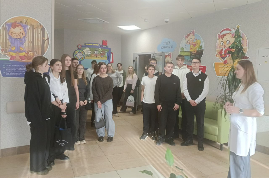 Медицинская сестра (старшая) детской поликлиники Ольга Пикун провела для гостей экскурсию по помещениям поликлиники и рассказала о ее строительстве и оснащении. Учащиеся побывали в кабинетах врачей-специалистов, увидели галокамеру и бассейн. Также они ознакомились с оборудованием, которое функционирует в учреждении.