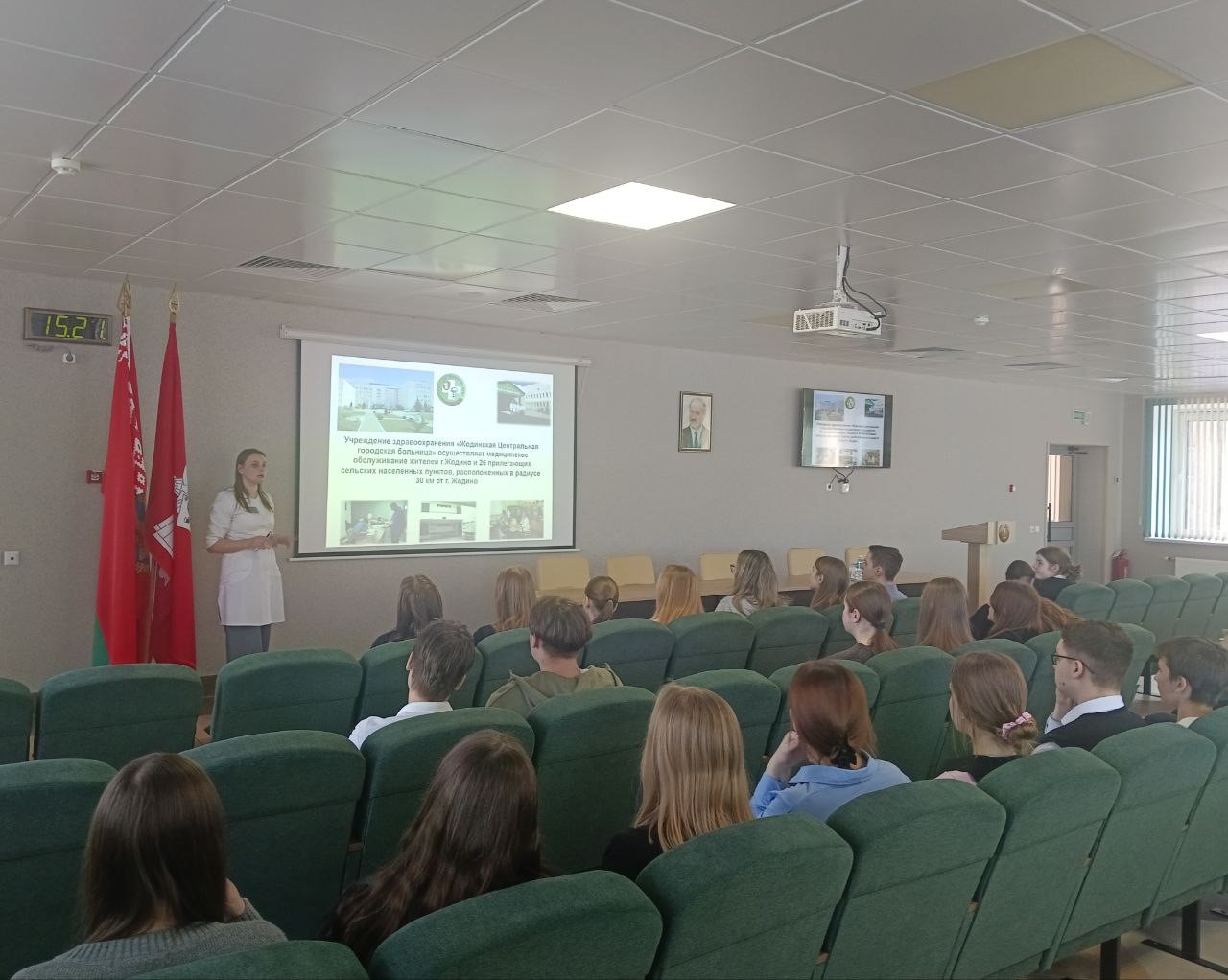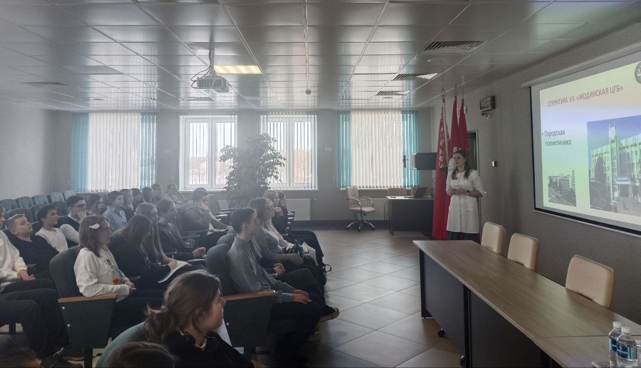 В рамках проведения областной межведомственной профилактической акции «Дружим с Законом!» сегодня в детской поликлинике была организована экскурсия и профориентационное мероприятие для старшеклассников Гимназии №1 г.Жодино и Средней школы №6 г. Жодино. Медицинская сестра (старшая) детской поликлиники Ольга Пикун провела для гостей экскурсию по помещениям поликлиники и рассказала о ее строительстве и оснащении. Учащиеся побывали в кабинетах врачей-специалистов, увидели галокамеру и бассейн. Также они ознакомились с оборудованием, которое функционирует в учреждении. В конференц-зале Ольга Казимировна рассказала о структуре больницы, ее оснащении, оказании медицинской помощи, а также предоставила информацию о целевых направлениях.