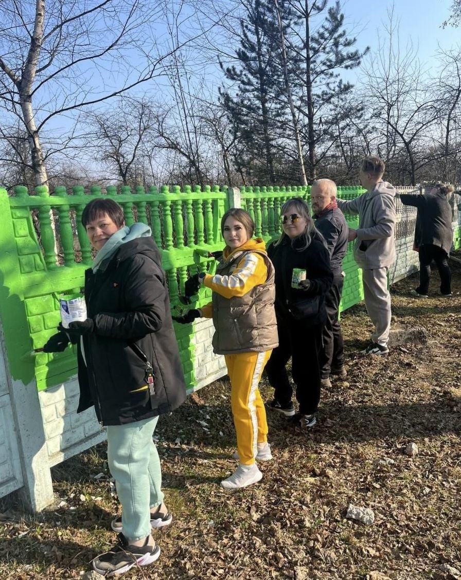 Сотрудники УЗ "Жодинская ЦГБ" приняли участие в городском субботнике. На улице Логойской красили забор вместе с работниками других организаций города.